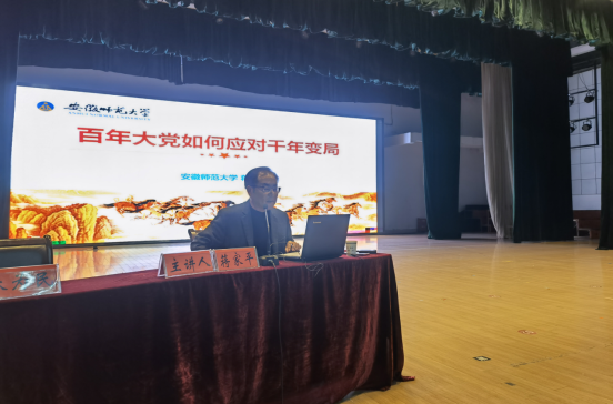 本网讯(新传学院 刘成俊)10月27日下午,校领导上“四史”教育专题课暨思政理论课在花津校区大礼堂精彩开讲。校党委副书记蒋家平为师生带来了主题为“百年大党如何应对千年变局”的精彩一课。部分机关职能部门负责同志,学校2021年新进教职工,新闻与传播学院、美术学院党政领导班子成员、辅导员、全体新生共同聆听了本次专题课。