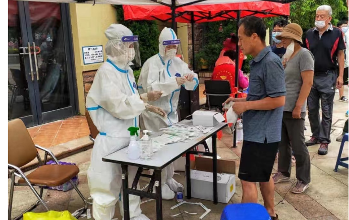 图为疫情防控志愿服务工作(左二)