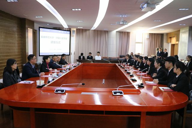 本网讯(经管学院 吴敬之 邓梦晨)11月14日, “洪银兴奖学金”颁发仪式在花津校区会议中心第一会议室举行。副校长彭凤莲,南京大学经济学系主任、民营经济研究所所长杨德才出席仪式,经济管理学院领导班子、辅导员和全体获奖学生参加了颁发仪式。颁发仪式由经济管理学院院长张廷龙主持。