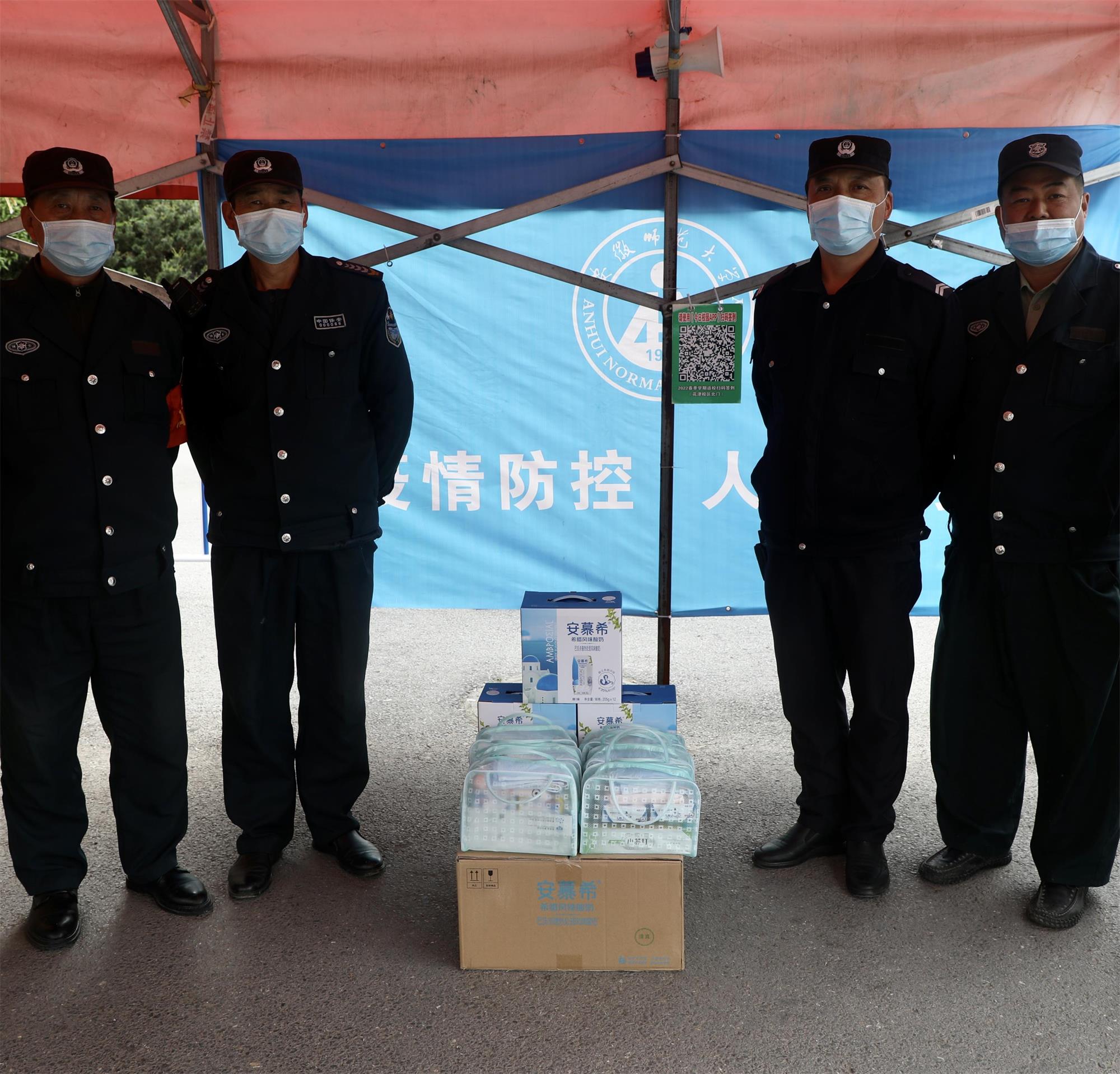 学校安保人员自开学以来一直坚守花津、赭山两个校区门岗工作,认真负责、任劳任怨,有效筑起学校阻挡新冠病毒的第一道防线。