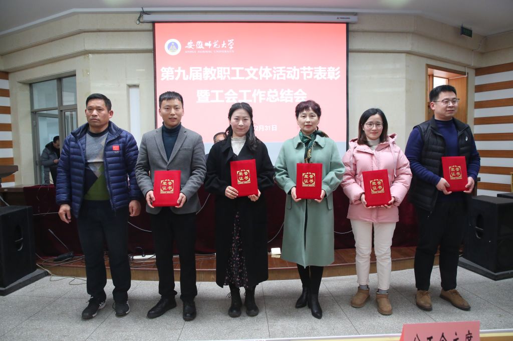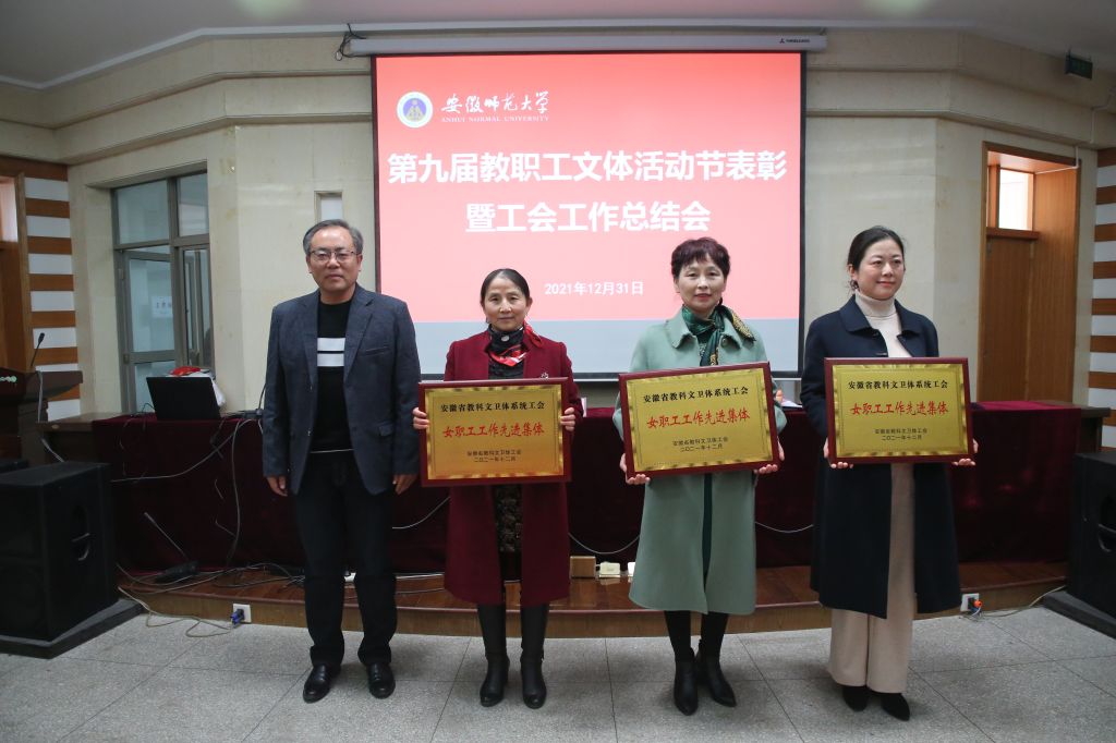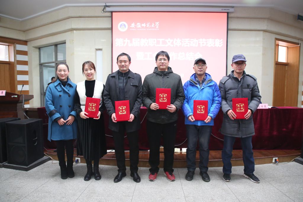蒋家平为获得省教科文卫体工会女职工先进集体、校第九届“教职工文化体育活动节”特别贡献奖和优胜奖的分工会颁发了奖牌;校工会副主席王俊恒、高守东为获得校第三次“优秀工会干部”“工会活动积极分子”的先进个人代表颁发了奖状。