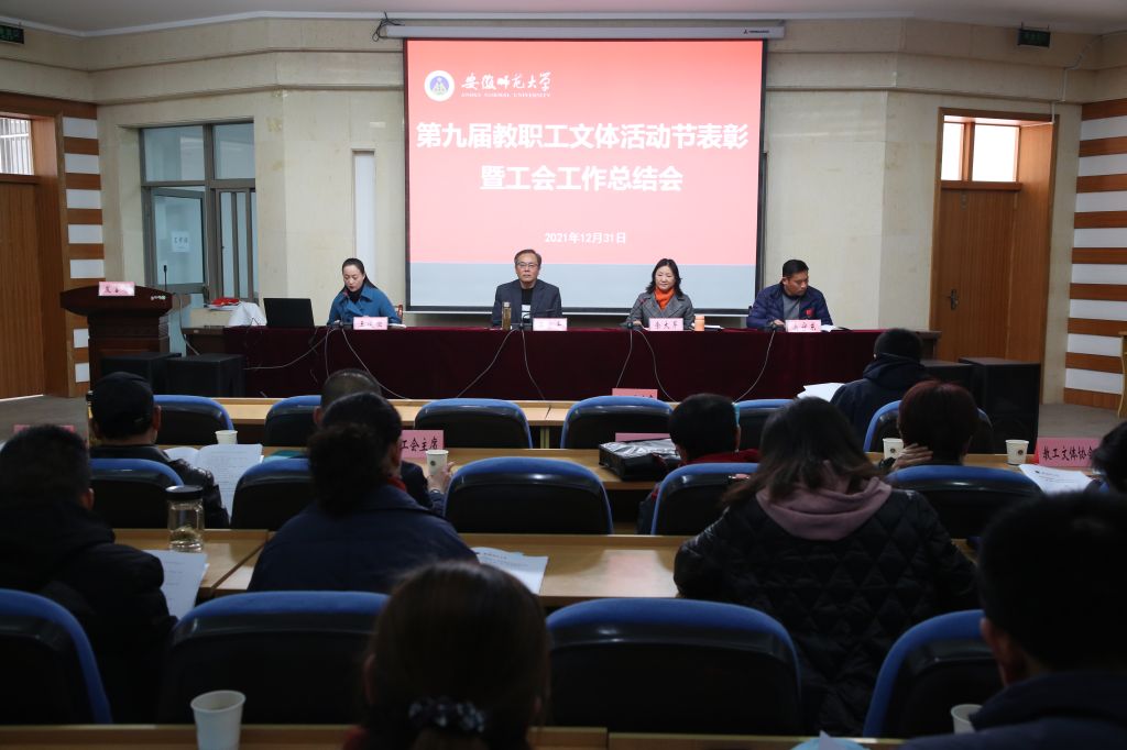 12月31日下午,学校在视频会议室召开第九届“教职工文化体育活动节”表彰暨工会工作总结培训会。校党委副书记蒋家平出席会议并作专题培训报告,校工会委员会常委、全体分工会主席、教职工文体协会有关负责人、各分工会文体委员及获奖人员代表等参加了会议。会议由校工会主席余大芹主持。
