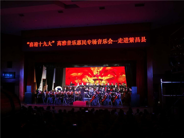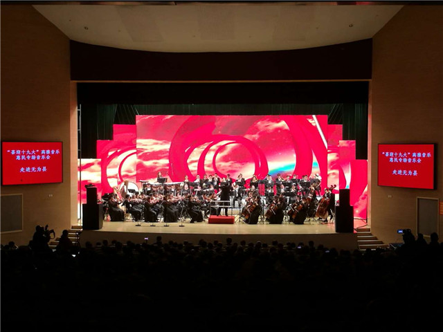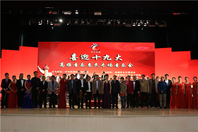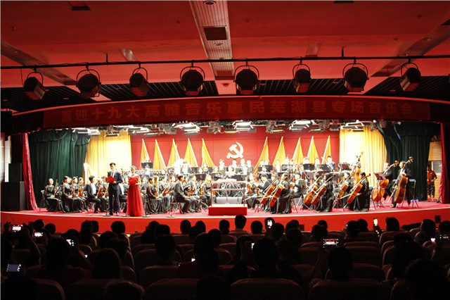 本网讯(音乐学院 张崇)喜迎十九大,颂歌献给党。10月10日至13日,由芜湖市委宣传部主办、安徽师范大学青年交响乐团承担整场演出任务的“喜迎十九大”高雅音乐惠民活动走进芜湖县、繁昌县、无为县三地,与父老乡亲们在充满激情与梦想的音乐声中,共同回顾党的十八大以来的丰收画卷,展望即将开启的党的十九大美好诗篇。安徽师范大学党委书记顾家山,芜湖市委常委、宣传部长段玉嘉,我校办公室、宣传部、人事处等部门负责同志赶赴现场慰问演出队伍,并观看了演出。