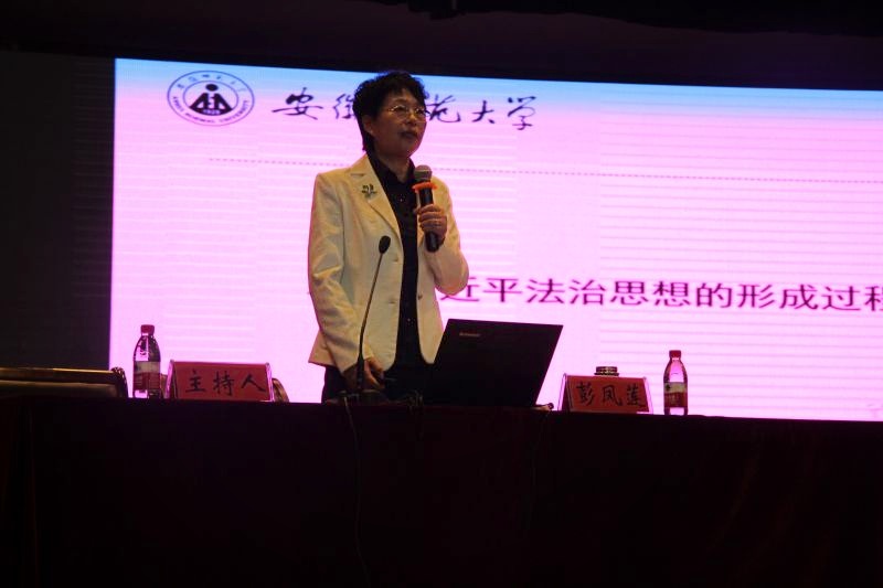 彭凤莲以“习近平法治思想的形成及其核心要义”为主题,从“习近平法治思想的形成背景”、“习近平法治思想的形成过程”、“习近平法治思想的核心要义”三个方面阐述了中国法治思想的形成以及法治制度的建立、走出中国式的依法治国的道路以及实现中华民族伟大复兴进入不可逆转的历史进程。彭凤莲指出,从“起草宪法”到“建设中国特色社会主义法治体系、建设社会主义法治国家”六十多年的法治建设,最终形成了完备的法律规范体系、高效的法治实施体系、严密的法治监督体系、有力的法治保障体系、完善的党内法规体系。