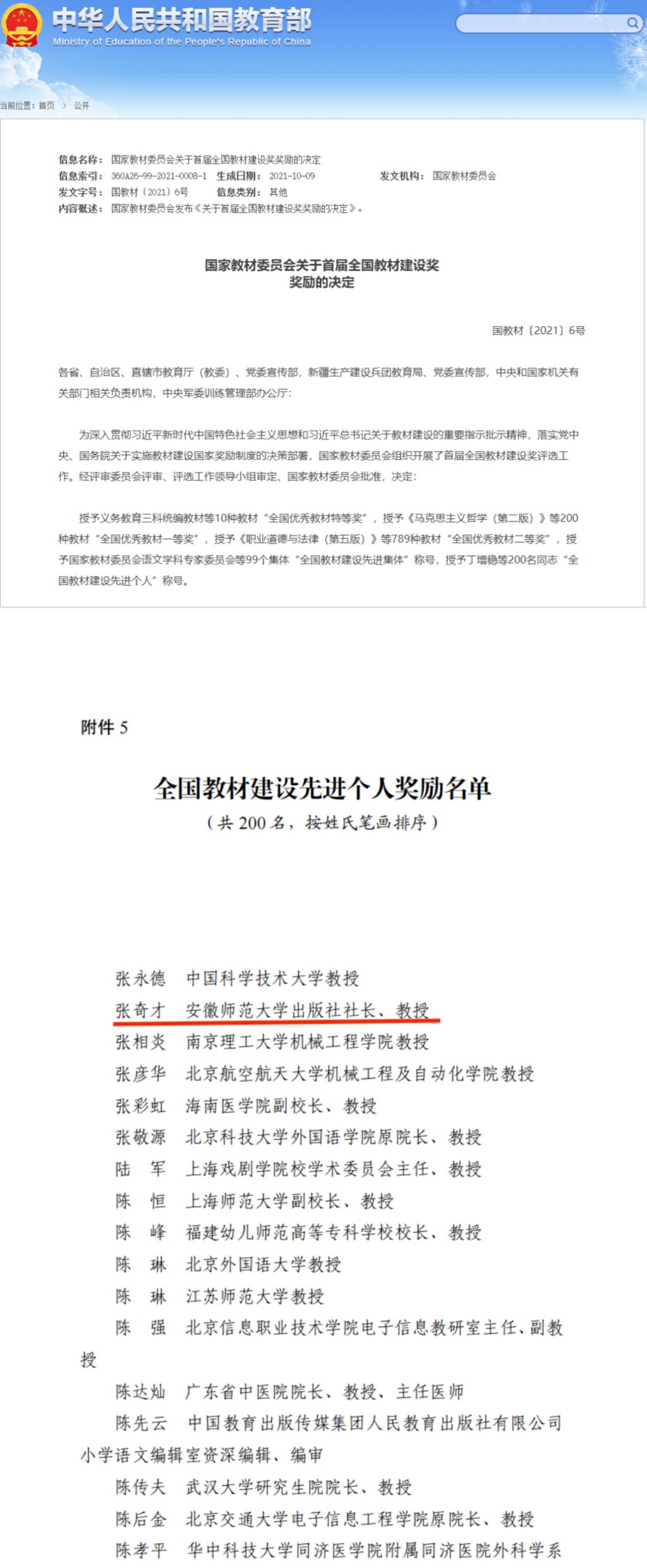 首届全国教材建设奖由国家教材委员会主办、教育部承办,是新中国成立以来首次全面覆盖教材建设领域所创立的专门奖励项目,也是全国教材建设领域的最高奖。