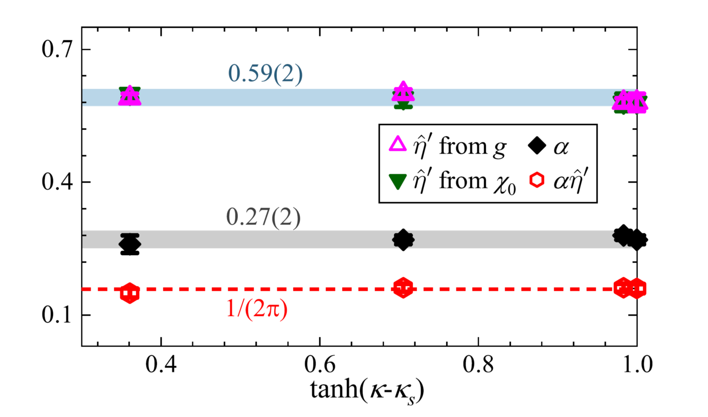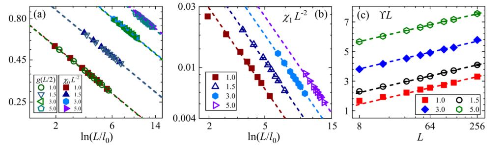 图2 两点关联、磁涨落和螺旋模量的对数标度[PRL 127, 120603 (2021)]