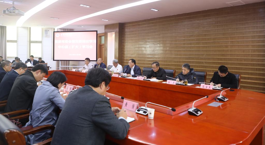 本网讯(宣传部 张春光/文 王哲谦/图)11月4日,学校召开党委常委会暨党委理论学习中心组(扩大)学习会,深入学习贯彻习近平总书记重要讲话精神,认真学习贯彻省第十一次党代会精神,传达学习省委关于加强新一届省委班子政治建设的决定,研究部署学校贯彻落实工作。校党委书记胡朝荣主持会议。校领导蒋家平、朱家存、陆林、周新发、熊宇杰、任永,校党委委员,各部门、各单位主要负责人和院级党组织负责同志参加学习会。