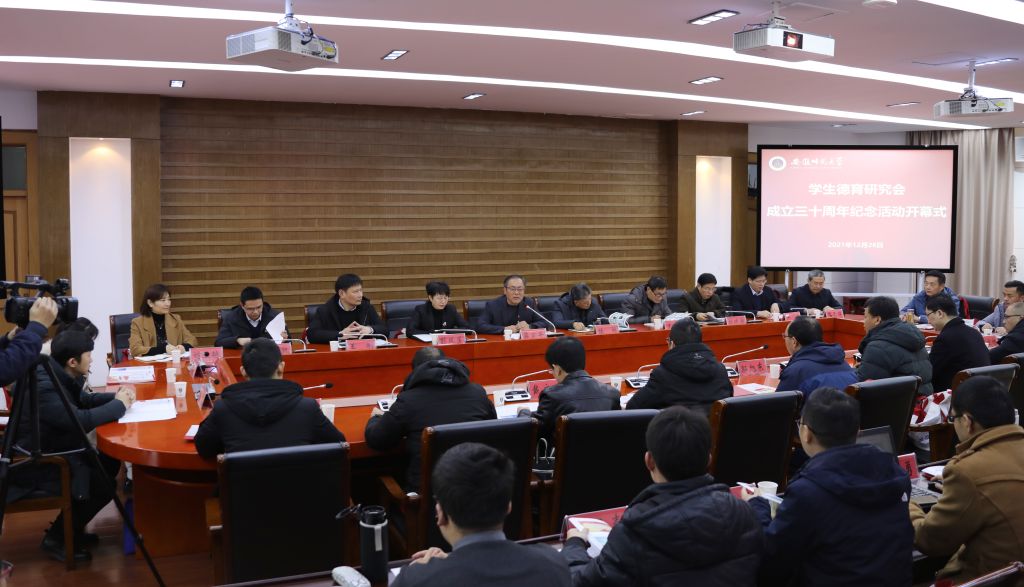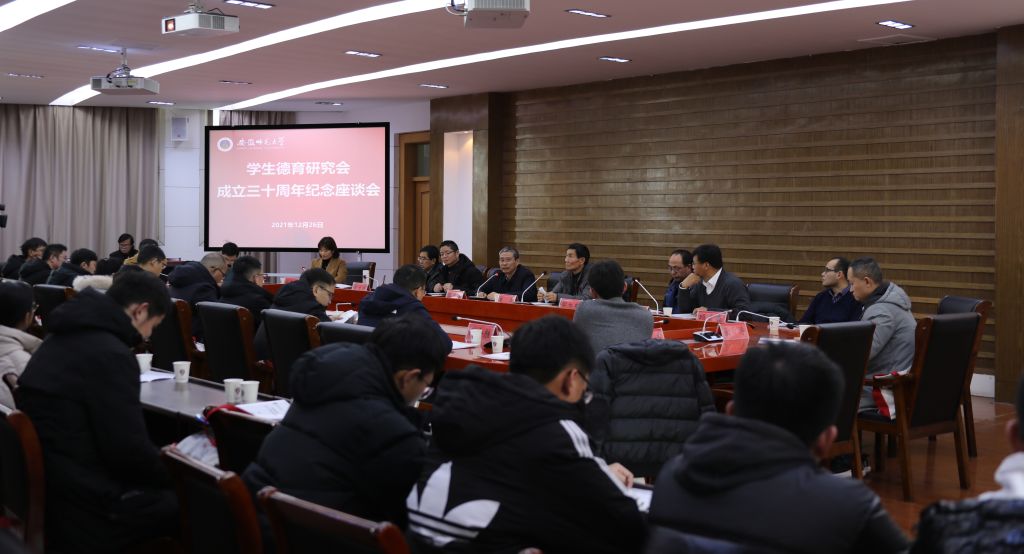 赭山揽翠,花津流芳。在全党上下深入开展党史学习教育、学习贯彻党的十九届六中全会精神之际,12月26日,学校在花津校区举办学生德育研究会成立三十周年系列活动。校党委副书记蒋家平,校党委常委、副校长陆林,副校长彭凤莲,宣传部、学工部、校团委、马克思主义学院相关负责同志,学生德育研究会指导教师朱平、路丙辉及校内外新老会员代表50余人参加庆祝活动。马克思主义学院党委书记严宏主持开幕式。