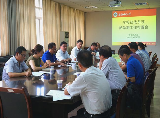 会上,顾家山首先以大事记形式通报学校近期工作,他从服务引领、合作办学、教育扶贫、校企合作、教学科研等方面概要介绍了学校近期发展的良好态势与成效。随后,重点介绍了省委书记李锦斌来校调研情况。他指出,李锦斌书记在第33个教师节来临之际走进安徽师范大学,看望慰问一线教职员工,与师生互动交流,对广大教师提出殷切希望,体现了省委省政府对教师教育事业的高度重视,体现了对我校广大教师的关心厚爱,更体现了对我校教育事业发展的充分肯定和大力支持。强调,李锦斌书记的讲话内涵丰富,处处彰显了对习近平总书记系列重要讲话精神尤其是党的高等教育理论的贯彻落实,充分体现了“以人民为中心”的教育发展观,对于指导我省教育改革发展必将具有重要的指导意义李锦斌书记的讲话对我们的工作是一种推动,既出了题目,又提了要求,还指明了方向。全校上下要迅速传达学习并贯彻落实李锦斌书记在调研座谈会上的讲话精神。他对我校各民主党派和知联会负责人,提出了三点希望和要求:一是要抓好学习领会在党的十九大之前,大家要认真组织学习习近平总书记关于高等教育改革发展和教师教育发展的重要讲话,并结合安徽实际和我校高水平大学建设实际,学习领会李锦斌书记讲话要点,推动我校“双一流”建设,向创新要动力,向改革要红利,以质量立校、服务发展为己任。二是要凝心聚力、恪尽职守。学校统战成员要服务好学校人才培养,科学研究、文化传承创新、国际交流合作等,为高等教育多做实事,敢讲话,讲,积极建言献策,服务地方经济社会发展三是要加强基层组织建设。学校各民主党派基层组织和知联会要从政治层面上维护大局,加强建设,积极维护学校的和谐稳定发展紧密团结在以习近平同志为核心的党中央周围,不忘初心,实现中国梦为教育强国推进五个师大”建设献计献策。