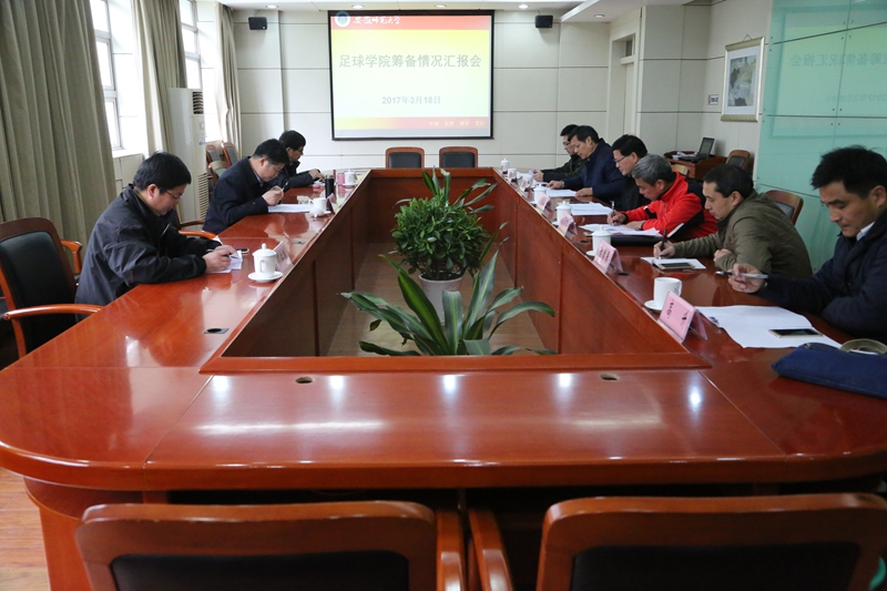 本网讯(体育学院 新闻中心)3月18日上午,学校足球学院筹备情况汇报会在校行政楼一楼会议室召开。省委教育工委副书记王佩刚、省教育厅体卫艺处处长宣进和我校党委书记顾家山、副校长朱家存以及体育学院负责同志参加了会议。会议由顾家山主持。