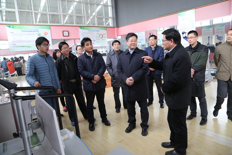 在听取我校足球学院筹备工作情况汇报前,王佩刚一行还现场查看了我校学生的体质健康测试工作,参观了“安徽省学生体质健康监测与研究中心”,对做好学生体质健康测试工作提出了指导性意见,明确了工作的要求。