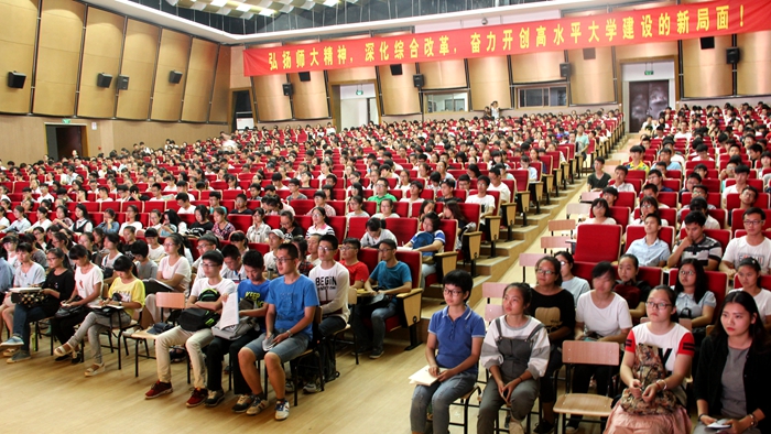 报告团成员由近年来学校涌现出的“师大骄子”十佳大学生、“爱暖师大”十佳(优秀)青年志愿者、大学生“自强之星”等各类学生党员、入党积极分子、优秀共青团员组成。9月5日至9月21日,报告团成员在赭山校区、花津校区大礼堂为2016级新生作了共计12场次的宣讲。中国青少年科技创新奖获得者耿竞分享了大学以来的学术科研经历和领奖时的喜悦,鼓励同学们追求梦想、坚持不懈;2015年“创青春”中国青年互联网创业大赛金奖获得者、2015年安徽省大学生“创业之星”陈博群分享了创新创业的感想与收获,弘扬“匠人文化”精神;校十佳大学生、十佳青年志愿者杨哲以自己在西部支教的经历鼓励同学们勇于自我成长、乐于服务他人;全国大学生艺术展演国家二等奖获得者、校学生会主席盖晨飞讲述了她从一个普通学生到社会实践达人的成长蜕变……优秀学子的成长经历深深感染和激励着每一名新生,此起彼伏的掌声喝彩声、热情踊跃的现场互动,新生们通过各种方式表达着对这些“校园先锋”们的敬佩和向榜样学习的决心。其间,校团委回应学生诉求,围绕本科生素质拓展学分实施方案作关于大学生素质拓展工程专题报告。