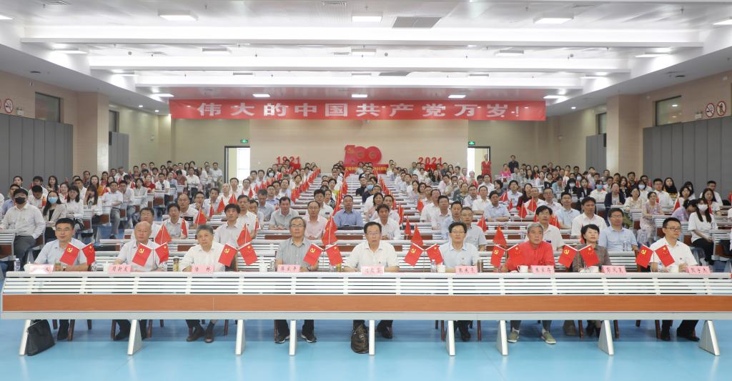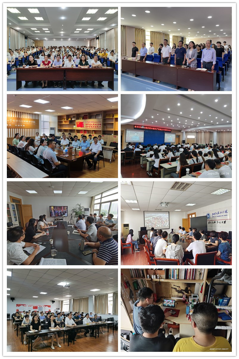 百年恰是风华正茂,携手奋进再谱新篇。学校理科实训中心报告厅主会场里气氛热烈,会场正中悬挂着“热烈庆祝中国共产党成立100周年”横幅,十面红旗分列主席台屏幕两旁,观众席前一面面鲜红的党旗汇成一片红色海洋,照映着师生们喜悦激动的心情。校园大屏幕前、各个学院会议室和报告厅,师生纷纷围坐在一起,认真聆听习近平总书记重要讲话。不少学院师生在观看完大会直播后还现场举行了入党宣誓,深刻表达对党的无限忠诚和热爱,坚定听党话、跟党走的信心和决心。