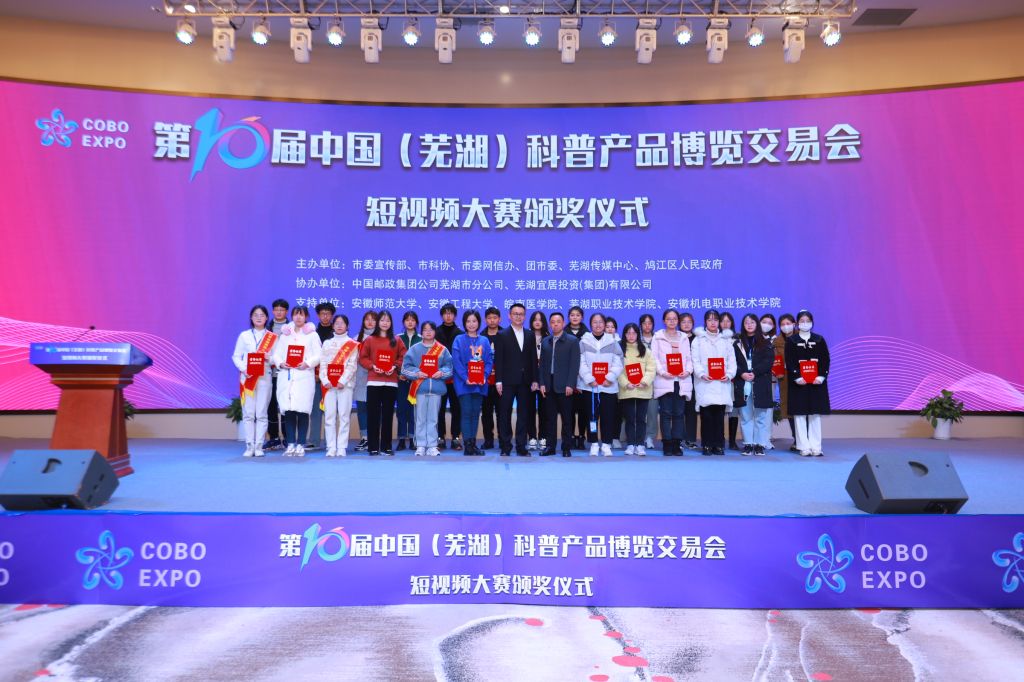 12月25日,由芜湖市委宣传部、市科协等单位主办的第十届中国(芜湖)科普产品博览交易会大学生短视频大赛颁奖仪式在宜居国际博览中心举行,校党委常委、副校长熊宇杰、校科协常务副主席耿保友受邀作为颁奖嘉宾参加了颁奖仪式。本次大赛我校学子共有636项作品参赛,获奖作品23项,其中一等奖2项,二等奖5项,三等奖16项。同时,我校荣获优秀组织奖。