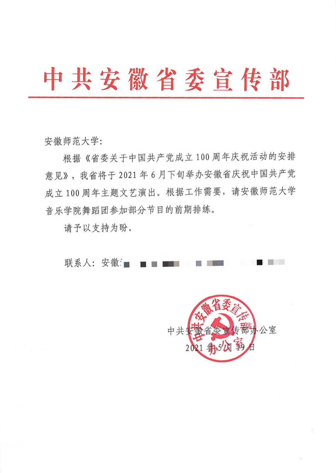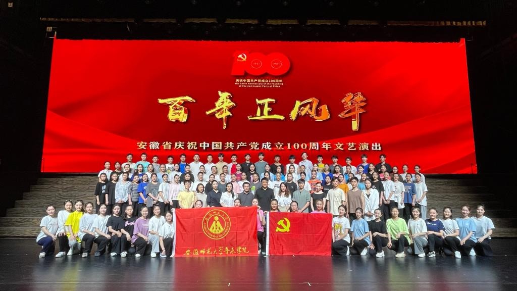 本网讯(音乐学院 高燕)6月28日晚,由省委宣传部主办的“百年正风华——安徽省庆祝中国共产党成立100周年文艺演出”在安徽大剧院隆重上演,我校音乐学院110名师生受邀参加了此次演出,并圆满完成了6个节目的演出任务。