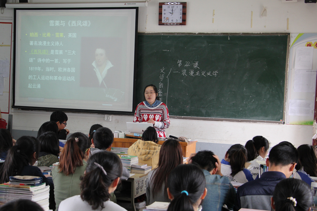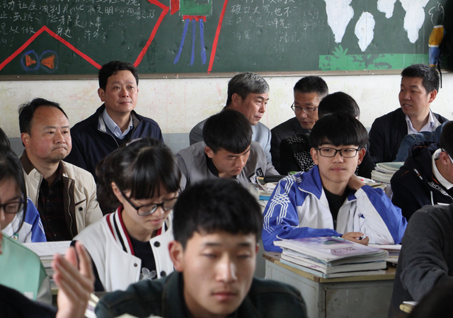 朱家存一行听取了实习生余蓓讲授的公开课——文学的繁荣,该课程是高中《历史(3)》(必修课,人教版)第22课。