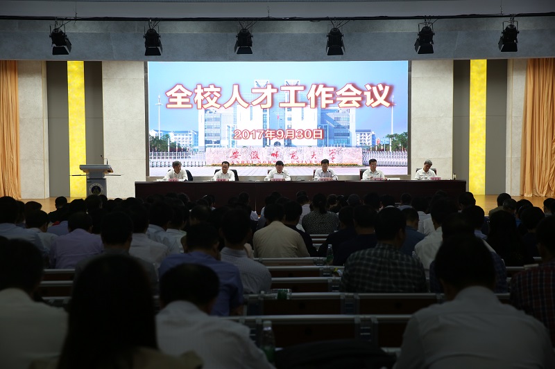 本网讯(党委宣传部 袁黎平/文 邾强/图)9月30日,安徽师范大学人才工作会议在花津校区实训大楼报告厅隆重召开,会议围绕“深入实施‘人才强校’战略,为特色鲜明的高水平大学建设提供坚强的人才支撑”主要任务展开。会议为期一天。校党委书记顾家山,校党委副书记、校长张庆亮分别主持了上、下午的全体会议,校领导李琳琦、程度、王绍武、朱家存,全体处级干部、校教代会执委,校、院教授委员会全体成员,专业负责人和学位点负责人共计440余人参加了大会。