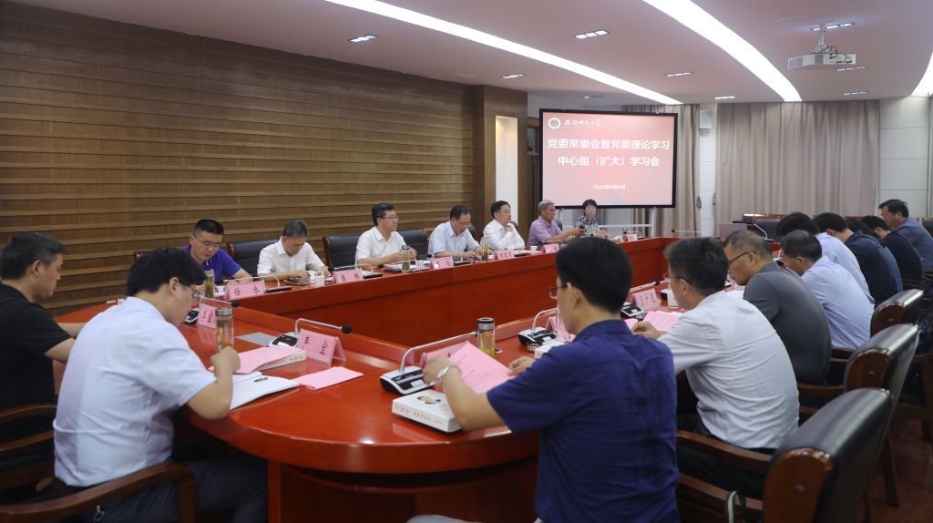 9月6日,学校召开党委常委会暨党委理论学习中心组(扩大)学习会,深入学习贯彻《习近平谈治国理政》第四卷,传达学习上级有关文件精神,组织开展专题学习研讨,研究部署学校贯彻落实工作。会议邀请安徽省委党史研究院副院长苗键作专家辅导报告。校党委书记胡朝荣主持会议。校领导周旭、朱家存、陆林、彭凤莲、任永,校党委常委、宣传部部长胡靖,校党委常委、组织部部长朱为民,校党委委员,各院级党组织,各部门、各单位主要负责同志参加学习会。