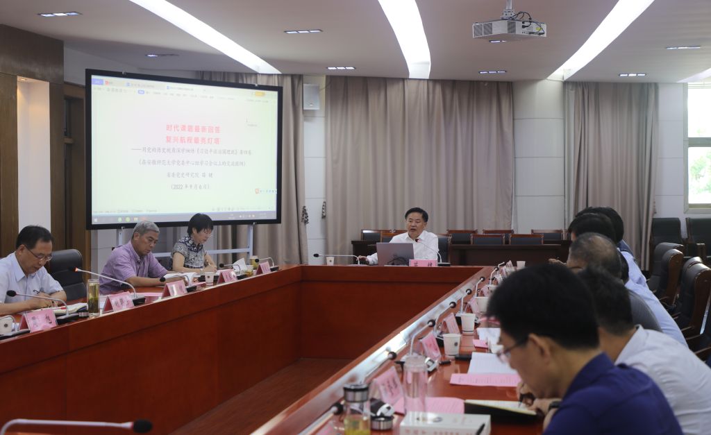校党委常委、副校长陆林,副校长彭凤莲,马克思主义学院党委书记严宏,教育科学学院院长李宜江分别围绕《习近平谈治国理政》第四卷的学习体会和工作实际,就“推进学校章程的实施与依法治校”和“推进立德树人与两大振兴行动计划”等主题作了专题研讨发言。