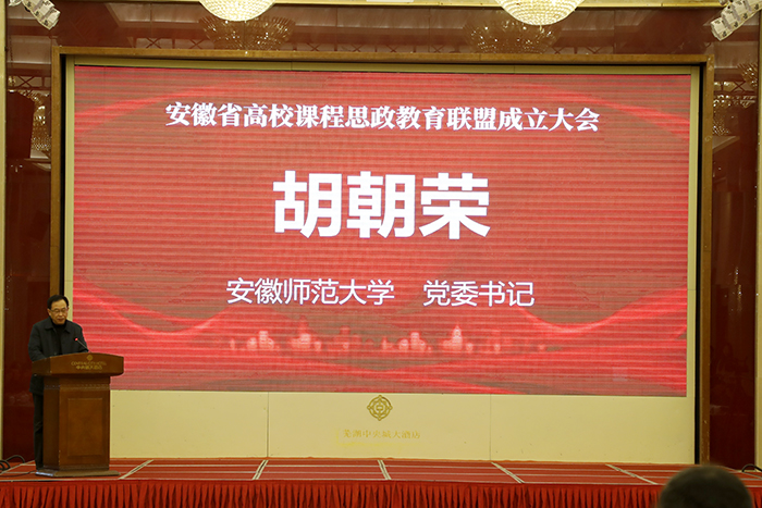 为深入贯彻落实习近平总书记关于教育的重要论述、全国教育大会精神,落实立德树人根本任务,在安徽省教育厅指导下,由安徽师范大学、安徽商贸职业技术学院和新华网发起的安徽省高校课程思政教育联盟于1月14日上午成立。本次会议采取线上线下结合方式进行,教育部高教司人文社科教育处处长张庆国,安徽省教育厅高等教育处处长张尔桂,安徽师范大学党委书记胡朝荣,安徽商贸职业技术学院校长李忠,新华网总裁助理姚予疆出席会议并致辞,联盟成员高校校领导、有关部门和学院负责同志及4000余名教师参加会议。会议由我校党委常委、副校长陆林主持。