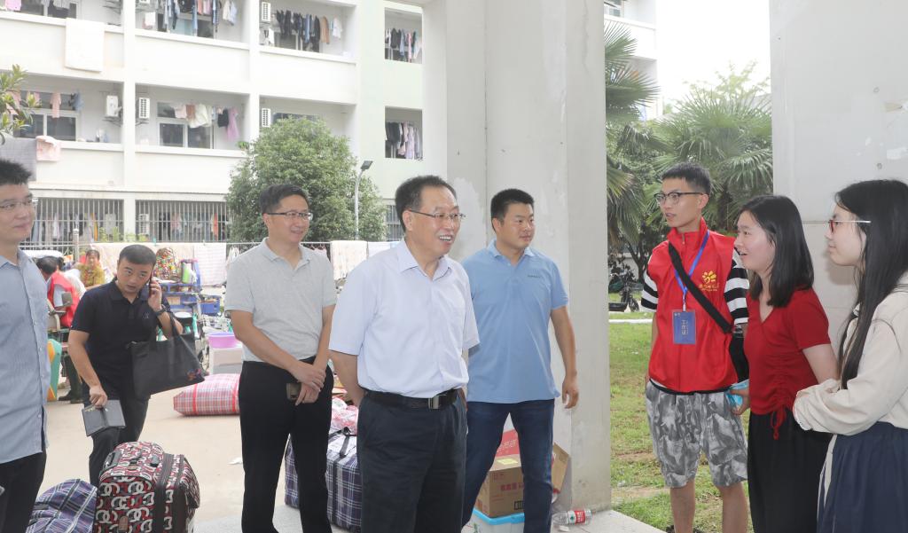 本网讯(党委宣传部)9月3日,我校老生陆续返校,校领导胡朝荣、蒋家平、朱家存、陆林、彭凤莲、周新发、熊宇杰、任永分别来到学生返校现场,看望慰问返校学生和参与搬迁工作的师生志愿者,并深入各自联系学院的学生宿舍,实地查看学生宿舍维修改造、调整后的情况,了解学生的诉求,现场办公研究解决问题。学校办公室、宣传部、纪委办、人事处、学生工作处、研究生院、科研处、总务处及相关学院负责同志陪同。