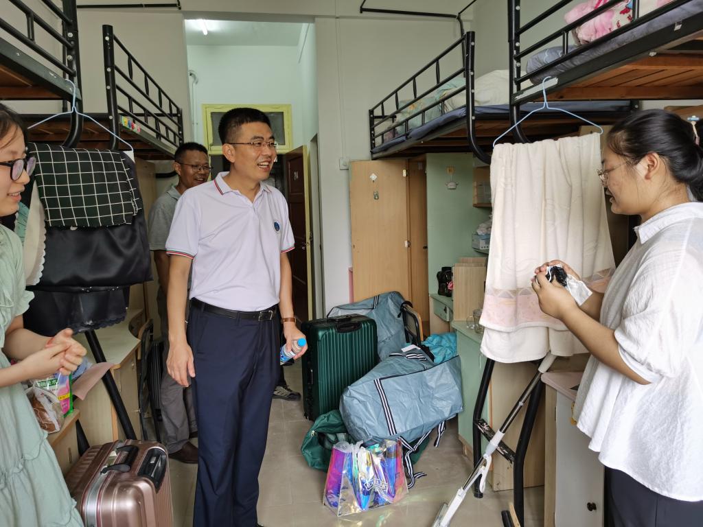 每到一处,校领导都与返校学生亲切交谈,详细询问学生返校后住宿饮食、学习生活等情况,叮嘱同学们在搬运行李的过程中一定要注意安全。“同学们辛苦了!”“换了宿舍习不习惯?”“目前有什么困难?”“对学校还有什么建议?”……来到维修改造后的学生宿舍,校领导仔细查看了学生宿舍内的家具、环境、生活配套设施等情况,和同学们亲切交流,耐心询问他们目前存在的困难和诉求。