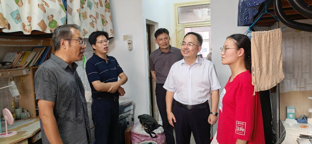 校领导表示,今年暑期,学校克服天气多变、疫情反复等困难因素全力施工,集中开展了学校办学史上最大规模的暑期维修改造工程,推进实施了花津校区热水进公寓项目,但受到时间、财力等客观条件限制,无法一次性对所有学生宿舍进行全面彻底改造,希望同学们能够理解。学校将继续为同学们在校期间的学习生活提供全面保障,同学们有任何生活和学习上的问题要及时向学校和老师反映,后续学校将持续推进宿舍改造,不断改善同学们的住宿环境和条件,提升学生宿舍服务保障水平,努力为大家营造更加温馨舒适的住宿环境。对现场发现的一些问题,校领导要求有关部门负责同志认真记录,尽快整改落实。要始终坚持以人为本,时刻关注返校学生的身体情况、心理状态和生活需求,及时帮助他们解决学习和生活上遇到的实际困难,切实保障同学们的正常学习生活。