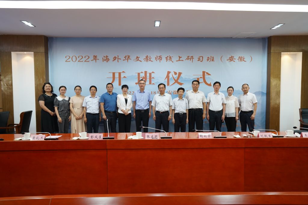 为进一步了解华文教育最新动态、提高华文教学能力、促进专业化发展,6月18日,由国务院侨务办公室主办,安徽省人民政府侨务办公室、安徽师范大学承办,印尼华文教育联合总会、印尼西加华文教育协调机构共同协办的“2022年海外华文教师线上研习班”开班典礼在我校举行。校党委书记胡朝荣、安徽省人民政府侨务办公室主任张启明、安徽省教育厅外事处二级调研员刘跃生、安徽省侨办侨务工作处副处长黄礼杰、芜湖市侨办二级调研员王涛出席仪式。我校港澳台侨事务办公室、国际教育学院负责人等参加仪式。印尼华文教育联合总会主席郑洁珊、西加华文教育协调机构副主席陈燕娜、印尼博纳教育董事长何涛、缅甸国际教育中心总经理房今今等嘉宾线上参加了仪式。仪式由副校长彭凤莲主持。