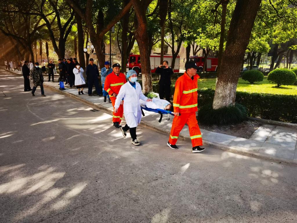 本次演习重点演练实验室一旦突发火灾事故,师生如何扑灭初起火灾并快速疏散。演习活动以实验室为着火模拟点,尖利的警报声骤然打破校园的宁静,实验室参演师生听到警报声后迅速反应,就地避险、果断采取措施扑灭初起着火点,学院老师、保卫处消防科和楼宇管理员立即组织学生按照设定的疏散路线迅速向实验室外撤离,消防员、物业保安和医护人员迅速携带担架和医疗箱展开营救,千余名师生全部安全集结到应急避难场地。