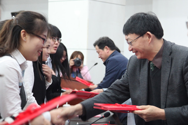 大会在庄严的国歌声中开始。副校长朱家存宣读了颁发决定,与会领导分六批次向获奖受助学生代表颁发了荣誉证书。2012级材料化学专业本科生张海宁、2015级动物学专业硕士研究生朱承节和2012级俄语专业本科生胡杰分别作为朱敬文奖学金、助学金和荣芝奖学金获得者代表发言,表达了自己的感恩情怀、阐述了对“敬文精神”和荣芝基金会宗旨的理解,并分享了自己学习和成长的体会。