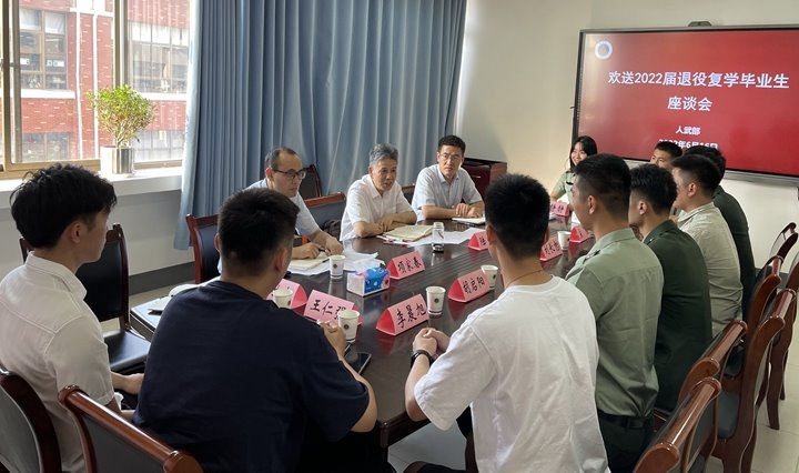 为进一步营造良好崇军拥军校园氛围,提高大学生参军入伍荣誉感,6月16日下午,学校举行座谈会欢送2022届退役复学毕业生,校党委常委、副校长陆林,人武部部长邵登辉,人武部副部长项家春及10名退役复学毕业生代表参加座谈会。座谈会由邵登辉主持。