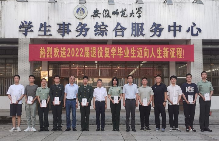据悉,学校高度重视退役大学生士兵教育管理服务工作,专门成立了“退役大学生士兵服务站”,坚持将征兵工作与人才培养有机融合,有效的促进了退役大学生士兵成长成才。2022届退役复学毕业生共48人,就业去向落实率已超过80%,其中12名同学分别保取或考取武汉大学、浙江大学、山东大学、北京体育大学、中国刑事警察学院等高校继续攻读硕士研究生。学校退役大学生士兵群体中先后涌现出“中国大学生自强之星标兵”蔡张飞、入选“红星宣讲团”的上等兵阿卜来提·阿卜力克木等一批先进典型。学校先后入选教育部首批“国防教育特色学校”“安徽省征兵工作先进单位”“安徽省拥军优属模范单位”等荣誉称号。
