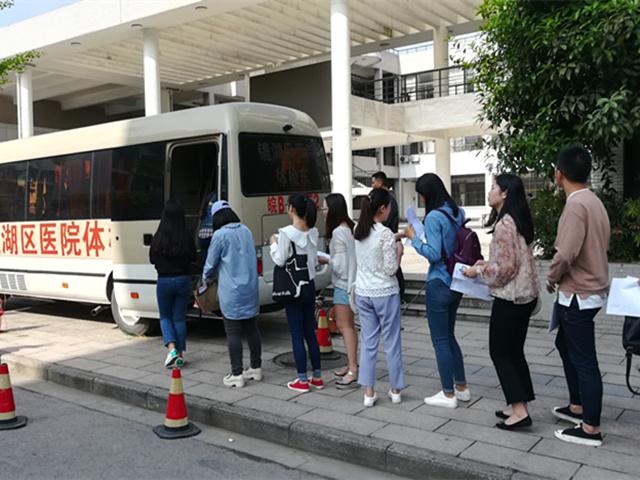 本网讯(学生处 郭志春) 5月5日、8日,学生工作处邀请镜湖区医院在花津、赭山两个校区开展2017届师范类毕业生教师资格认定体检工作,为一千多名师范类毕业生提供“一站式”便捷服务。