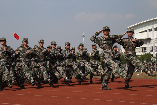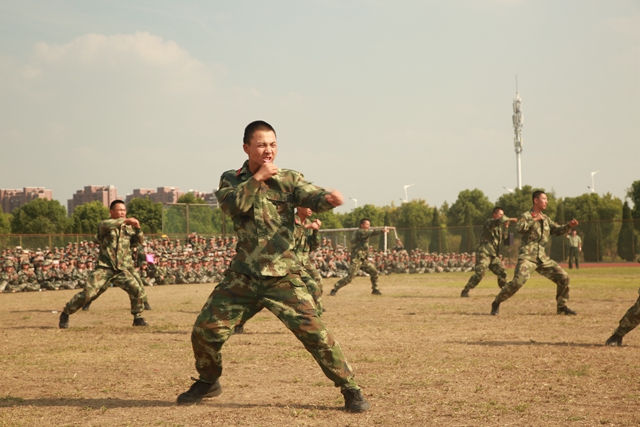 国旗护卫队缓缓升起国旗,全场起立齐声高唱国歌,比赛正式拉开帷幕。各营参赛方队依次进行了分列式表演展示,斗志昂扬地经过主席台,接受领导检阅。同学们饱满的精神、整齐的步伐、响亮的口号赢得了在场师生和观众的热烈掌声。承训部队教官现场表演了精彩的擒击拳和格斗术,展现了当代军人昂扬的革命斗志和精湛的军事技能,喝彩声、欢呼声、掌声将会操大会推向高潮。