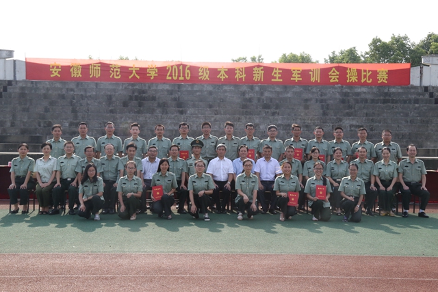 本网讯(学工处 孙良林/文 崔玉凤 李震/图)9月20日下午,我校2016级本科新生军训会操比赛分校区同时进行。校纪委书记程度、副校长朱家存、武警芜湖市支队直属大队大队长莫军、中队长汪洋、军训工作领导小组成员出席会操比赛。人武部部长台启权、人武部副部长聂全高分别主持会操比赛大会。