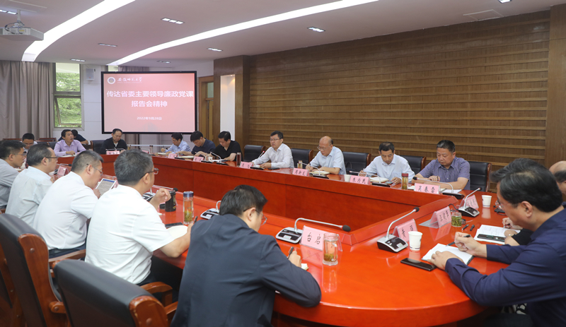 9月28日上午,学校召开专题会议,传达学习省委书记郑栅洁廉政党课报告会精神,校党委副书记周旭主持会议并讲话。校党委常委、纪委书记、监察专员周新发出席会议,各部门、各单位主要负责人,各院级党组织负责人参加会议。