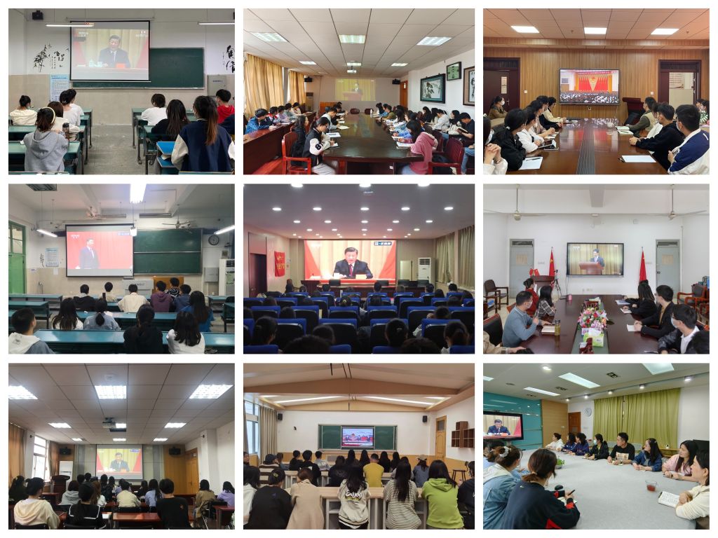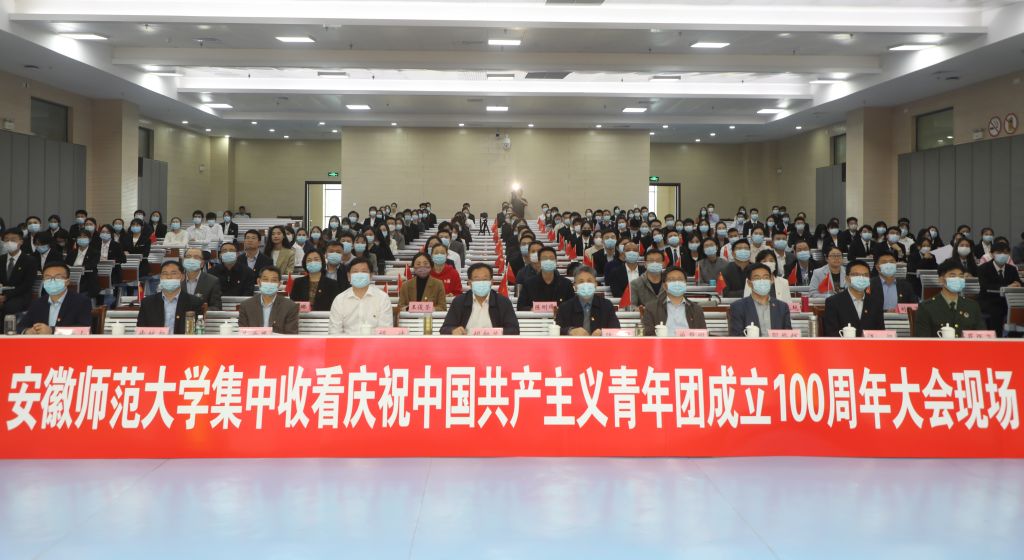 5月10日上午10时,庆祝中国共产主义青年团成立100周年大会在北京人民大会堂隆重举行。中共中央总书记、国家主席、中央军委主席习近平发表重要讲话。学校积极组织广大师生、团员青年通过电视、广播、网络等方式集中收听收看大会实况,热烈庆祝中国共产主义青年团成立100周年。校党委书记胡朝荣,党委常委、副校长陆林以及有关部门、各学院负责人与在校的中国青年五四奖章获得者、中国大学生自强之星标兵等各领域优秀青年师生代表、各学院团员团干部代表一起在花津校区理科大楼实训中心一楼报告厅集中收看大会实况。活动开始前,胡朝荣与部分优秀青年师生代表合影留念。