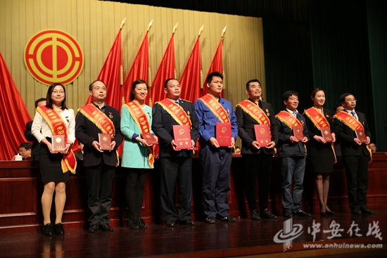 本网讯(外国语学院)4月29日,安徽省庆“五一”暨投身“调转促”、建功“十三五”劳动竞赛动员大会在安徽大剧院隆重召开。会上,省劳动竞赛委员会、省总工会表彰授予131位同志“安徽省劳动竞赛先进个人”称号,并颁发“安徽省五一劳动奖章”。我校外国语学院王瑜老师喜获“安徽省五一劳动奖章”。
