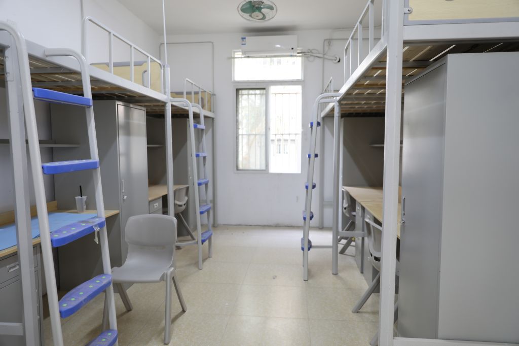 新生宿舍楼1-8号楼,有上下铺、也有上床下桌,基本为5人和6人间,分为单面楼和双面楼。每栋楼配备有洗浴间,内有洗衣机、吹风机及开水机等设施,方便学生使用。