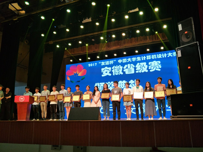 本网讯(数计学院 李文利 许晓峰)6月4日上午,2017年“友道杯”中国大学生计算机设计大赛安徽赛区颁奖大会在安徽大学隆重举行。经过前期比赛的激烈角逐,数计学院取得一等奖3项,二等奖4项,三等奖5项的优异成绩,学校同时获评优秀组织奖。