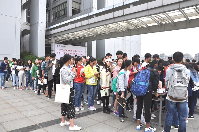 本网讯(图书馆 校团委 文学院)4月21日,学校2017年“书香校园”读书创作活动暨“第十一届读者服务宣传月”活动启动仪式在敬文图书馆举行。文学院教授、博士生导师潘务正,图书馆馆长方青,图书馆党总支书记程文海,校团委书记梁燕、文学院党委副书记戴和圣、校学生会主席蔡志鹏等出席仪式,图书馆教师代表、各学院团委负责人及学生代表200余人参加活动。启动仪式由校团委副书记刘长生主持。