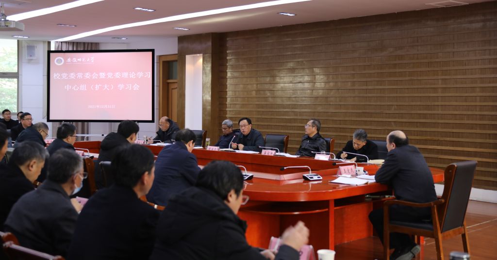 12月31日,学校召开党委常委会暨党委理论学习中心组(扩大)学习会,深入学习领会中央和省委经济工作会议精神,认真学习贯彻中央党史学习教育总结会议精神,组织开展专题学习研讨,研究部署学校贯彻落实工作。校党委书记胡朝荣主持会议。校领导蒋家平、朱家存、陆林、周新发,校党委委员,各部门、各单位主要负责人和院级党组织负责同志参加学习会。