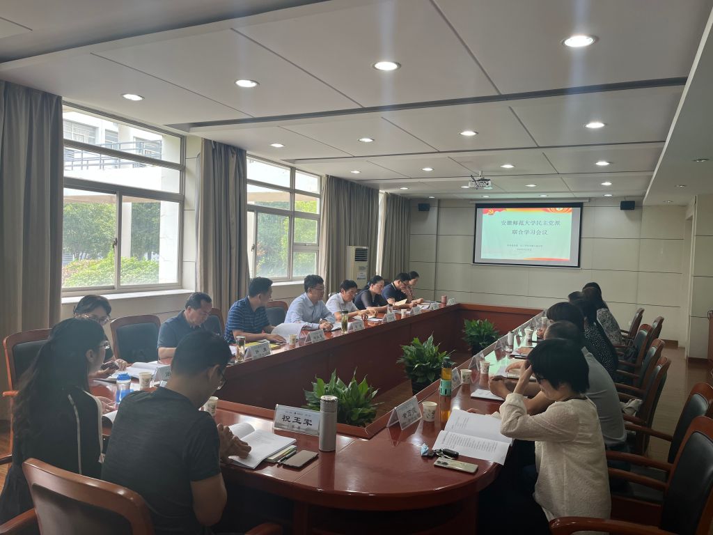 杨如意领学了《人民日版》7月31日刊载的《习近平在中央统战工作会议上强调 促进海内外中华儿女团结奋斗 为中华民族伟大复兴汇聚伟力》。统战部副部长李叶青和农工党安师大支部主委沈世培分别结合自身工作,交流了个人学习习近平总书记重要讲话精神心得。民革安师大支部主委张小俊、民盟安师大委员会副主委周向华、民建安师大支部主委许勇、民进安师大支部主委杨彬先后就加强学习、建言献策等工作作交流发言。