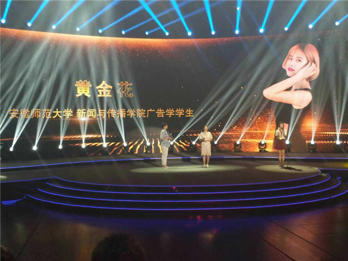 本网讯(新闻与传播学院 孙月婷 ) 由安徽广播电视台主办,安徽经视、安徽省直团工委、安徽省直青联承办的“2017安徽青年先锋评选活动”颁奖盛典于8月5日晚于安徽广播电视台 “亚洲一号”演播厅圆满闭幕。通过社会推荐、网络投票、专家评审等方式,最终十位代表时代精神的安徽青年先锋脱颖而出。安徽师范大学新闻与传播学院广告学专业2014级本科生黄金花,作为年龄最小的入围者、唯一的在校大学生,不负众望成功入选2017安徽青年先锋。