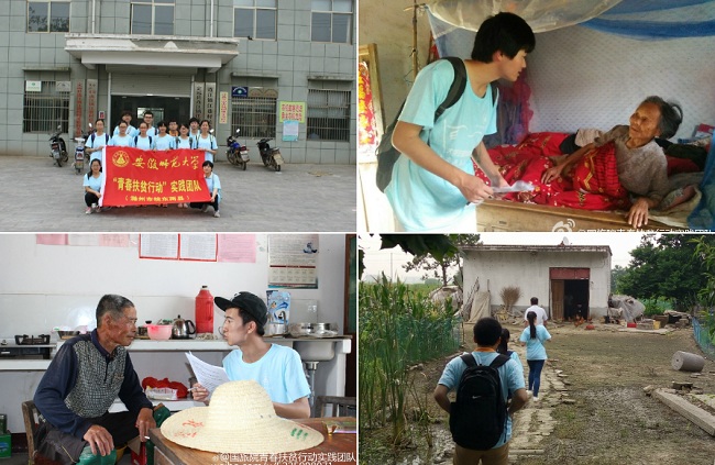 据悉,国旅学院高度重视大学生暑期“三下乡”社会实践活动,自6月启动以来,学院积极动员,精心组织,做好安全教育和组织保障,引导学生围绕社会热点和专业所学,广泛开展丰富多彩的实践活动,积极探索实践育人新机制。学院共组织3支“青春扶贫行动”实践团队分赴井冈山市、金寨县和定远县开展活动,其中1支团队入选2016年团中央“井冈情?中国梦”全国大学生暑期实践季专项行动立项,另有1支团队获“青年中国行”2016大学生暑期社会实践调研活动全国百强团队立项。本次赴滁州市“青春扶贫行动”实践团队由国旅学院组织发起,由来自国旅、经管、环工、生科、数计、法学院等6个学院的12名青年学子组成,于7月5至15日在定远县连江镇江巷社区、路陈村等地开展扶贫工作和农村基础教育专题调研,并通过搜集当地贫困户和空间地理信息,构建贫困户地理信息模型,为当地扶贫工作的开展献计献策。
