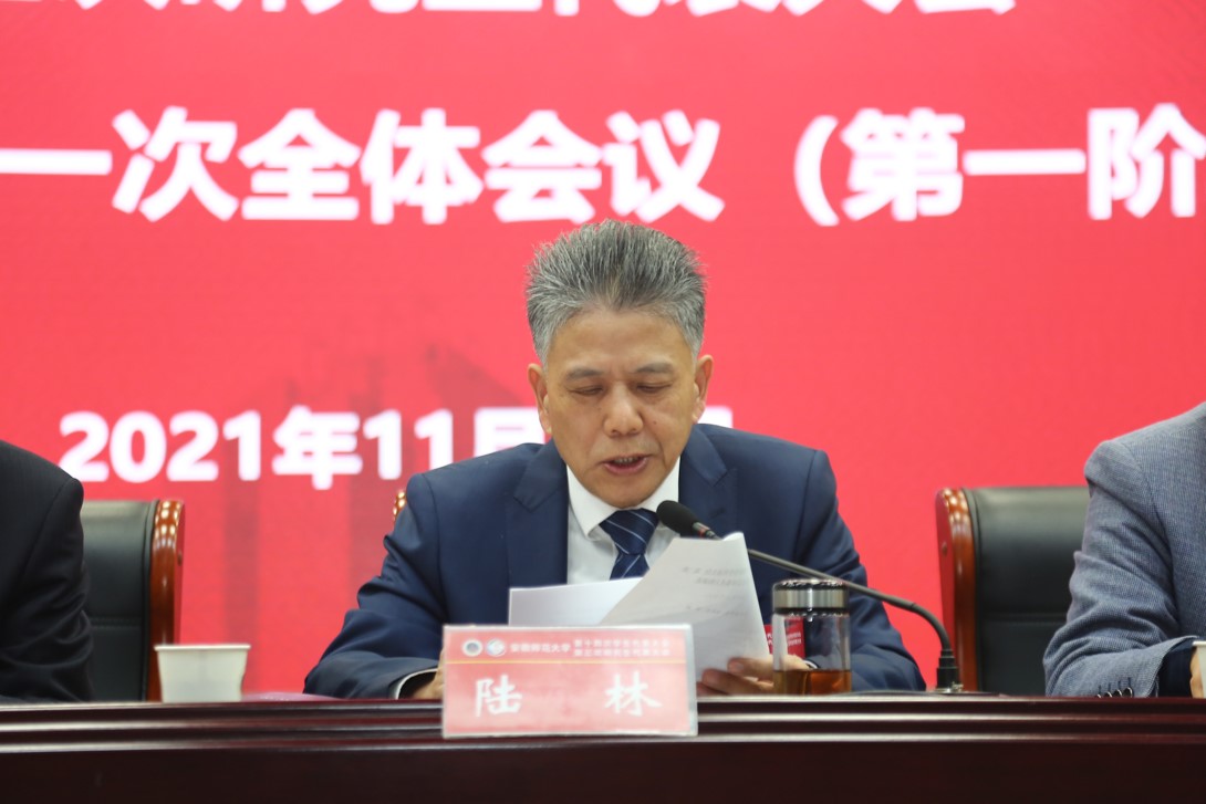 陆林在讲话中代表学校向大会的召开表示热烈的祝贺,向全体与会代表和全校同学致以亲切的问候。他表示,一年来,全校各级学生会、研究生会组织聚焦“政治引领、服务同学、桥梁纽带”职责定位,扎实有序推进组织改革和工作创新,在强化思想引领、塑造优良学风、建设文明校园、维护学生权益、丰富文化生活等方面取得了显著成绩。他鼓励各级学生会、研究生会组织再接再厉、勇于创新,组织动员青年学生用实际行动发出“请党放心,强国有我”的时代强音。要心怀“国之大者”,立足中华民族伟大复兴战略全局和世界百年未有之大变局,胸怀对党、对祖国、对民族、对人民的忠诚大爱,把个人梦想融入民族复兴的历史洪流。要追求人生境界,让精神世界充沛丰盈,增强做中国人的志气、骨气、底气。要埋头苦干实学,读万卷书、行万里路,在人生道路上埋头苦干、久久为功,在真刀真枪的苦干实学中成就事业。要矢志艰苦奋斗,牢记使命、勇担大任,不懈奋斗、永远奋斗,用奋斗刷出这一代中国青年的“存在感”。他希望广大学子牢记习近平总书记的嘱托,立大志、明大德、成大才、担大任,始终仰望星空、脚踏实地,为拥抱百年师大的美好未来、为实现民族复兴的伟大梦想贡献青春力量。