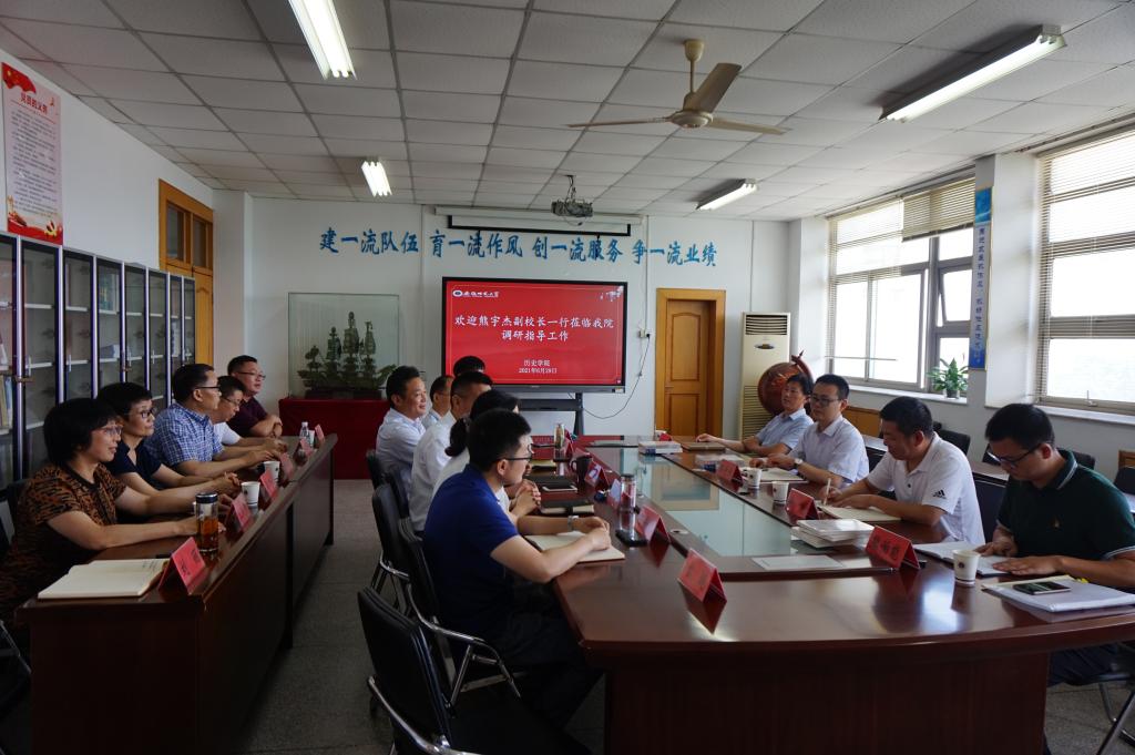 本网讯(历史学院 刘丽)6月29日,校党委常委、副校长熊宇杰,科研处处长徐彬、国际教育学院院长张德让一行到历史学院调研并召开座谈会。学院领导班子、教师代表、相关科室人员参加了座谈会,院党委书记顾凌主持会议。