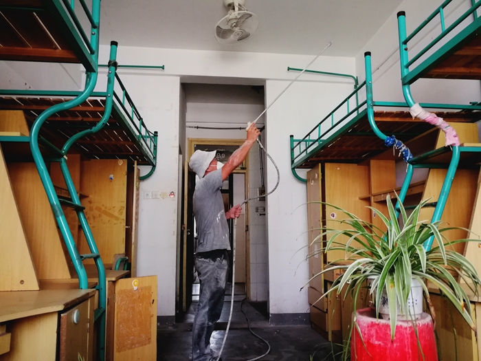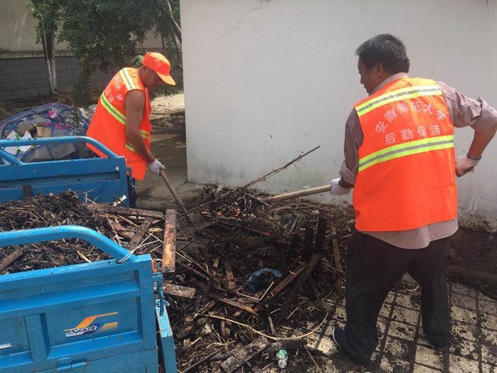 本网讯(党委宣传部 袁黎平/文 邾强/图 后勤管理处/图)连日来,骄阳似火,高温持续,暑期正值学校放假,然而却是后勤人最为忙碌的日子,他们抢修水道,维修水电线路,清除河道淤泥,维修宿舍栏杆,维护花圃绿地,越高温,越忙碌,只为将校园呵护得更健康,装点得更美丽。让我们走近他们,聆听高温下的故事,向他们致以真诚的敬意。