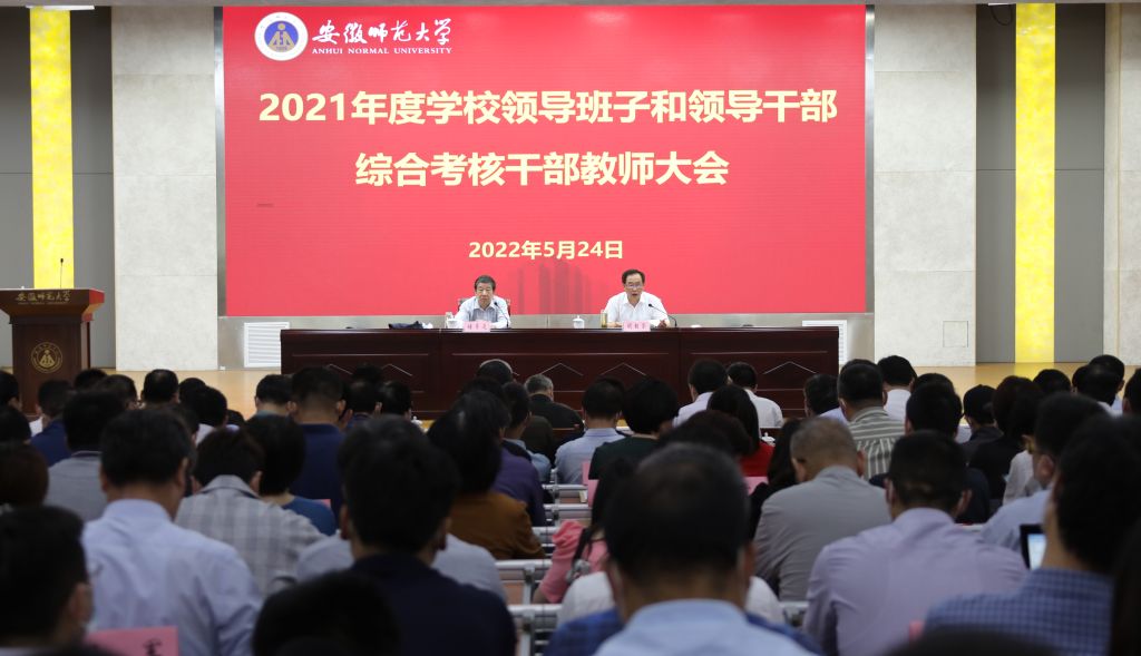 根据省委统一部署和省委综合考核工作领导小组安排,5月24日,由省委教育工委委员、省教育厅副厅长储常连带队的省委第十三综合考核组一行6人来校对学校领导班子和领导干部2021年度工作进行综合考核。综合考核分为大会述职与测评、个别谈话、实地查看等环节进行。