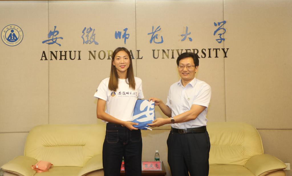 会上,张庆亮代表学校向王春雨表达了诚挚的问候和衷心的祝贺。他指出,春雨同学此次夺冠并打破记录是中国的骄傲、安徽的骄傲,更是安徽师大的骄傲,充分展示了学校高质量的育人成果。学校要进一步总结人才培养经验,创新人才培养模式,完善人才培养体系,让学生享受越来越多的优质教育资源。他希望,春雨同学要继续弘扬“厚重朴实、至善致远、追求卓越、自强不息”的师大精神和“更高、更快、更强”的体育精神,不断提高自身运动水平、提升赛事成绩,在东京奥运会上再取佳绩、再折桂冠、再攀高峰,为国争光,为学校添彩。